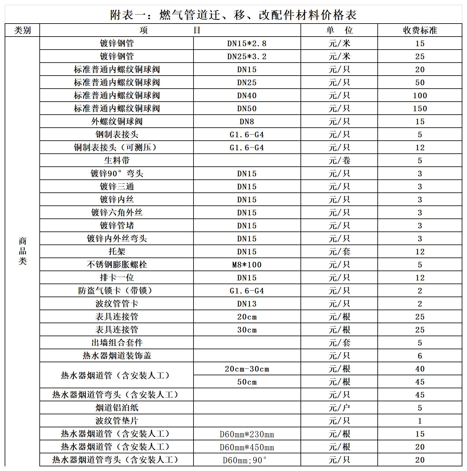 青陽港華管道燃氣延伸服務項目收費標準
